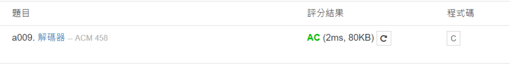 來源 : https://zerojudge.tw/ShowProblem?problemid=a009 出題者 : ACM 標籤 : 字元處理 難易度 : 0.2