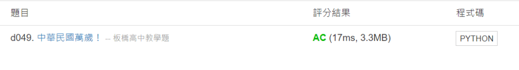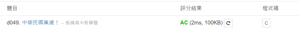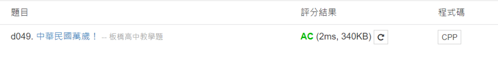 來源 : https://zerojudge.tw/ShowProblem?problemid=d049 出題者 : snail蝸牛 標籤 : 基礎運算 難易度 : 1