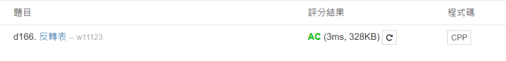 解題想法 : 數字應該要放在哪裡呢? 就是由所謂的「反轉表」來決定,我們會以題目的範例測資作為反轉表的範例。 反轉表s[] : [2, 3, 6, 4, 0, 2, 2, 1, 0] 首先我們看到反轉表的第一個位置是2,表示1的前面會有2個比他大的數,所以我們必須要預留這些位置,為了保證預留的位置是剛好的,我們得從小到大找位置,也就是從1開始放。 為何從小到大放一定會是正確的呢? 範例中反轉表1的值是2,所以我們會保留2個「0」在前面,因為是從小到大放,所以後續不論是誰都比1大,所以不管是誰放在預留的「0」上面,都會是成立的。 設反轉表的數字為k,答案陣列設為ans[],cnt記錄0出現的次數,要放的數是i。 實作上為了方便我們可以先將ans[]全部先填0,因此我們就從ans[]的第一項開始找,並隨時記錄cnt,遇到0就把cnt+=1,當cnt等於k+1時,表示前面已經預留了k個「0」,k+1就會是i應該要放的位置。 照著這個規律下去實作就可以解決此題。 (注意 : 題目雖然沒有提到,但是需要反覆讀取直到檔案結尾)