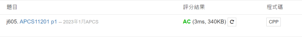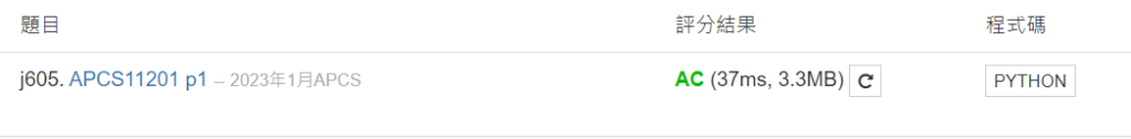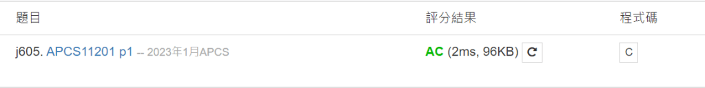 來源 : https://zerojudge.tw/ShowProblem?problemid=j605 出題者 : 2023年1月APCS 標籤 : 迴圈、找最大值 難易度 : 1
