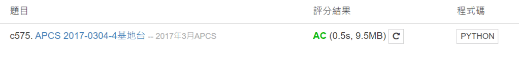 來源 : https://zerojudge.tw/ShowProblem?problemid=c575 出題者 : 2017年3月APCS 標籤 : 二分搜尋法 難易度 : 3
