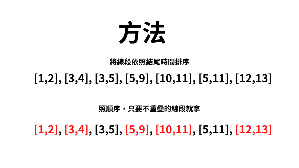 這是一個非常經典的貪心法題目,只要提到貪心就會想到它,但要如何實作並證明呢?請看以下投影片 :